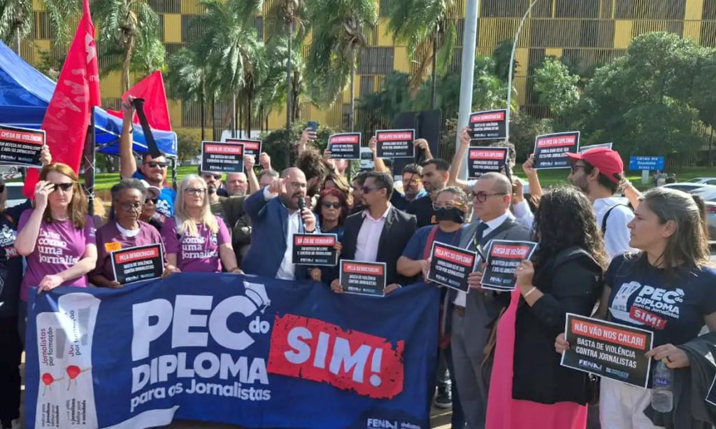 A presidente da Fenaj, Samira Cunha, lembrou que o Brasil registrou 144 casos de violência contra profissionais da imprensa em 2024.