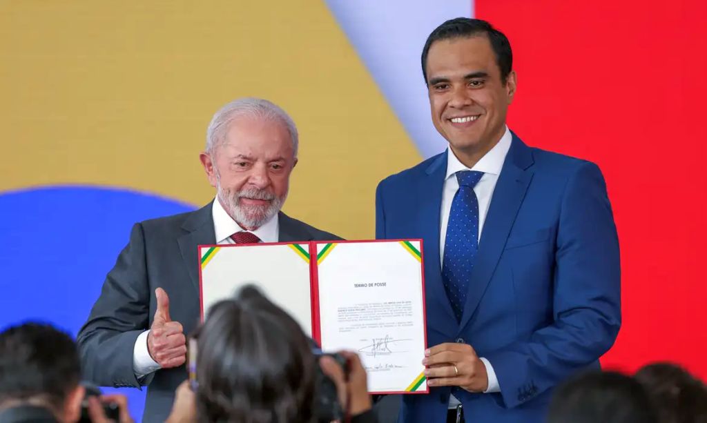 O presidente Luiz Inácio Lula da Silva deu posse, nesta terça-feira, 23, ao novo ministro do Turismo, Gustavo Feliciano, em cerimônia no Palácio do Planalto.