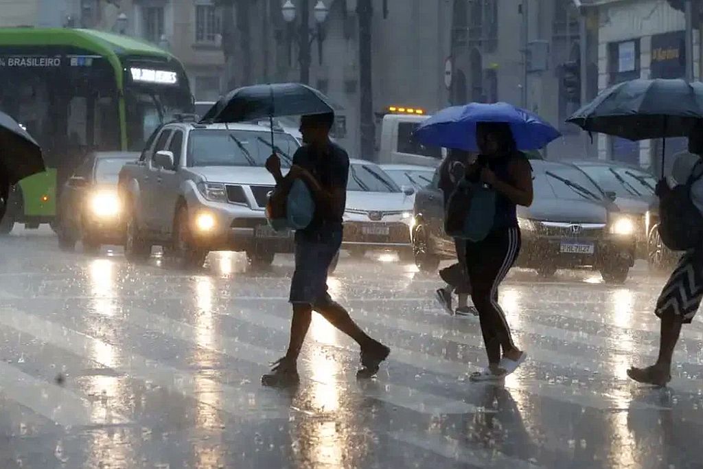 O Inmet aponta risco de chuvas entre 50 mm e 100 mm e ventos de 60 km/h a 100 km/h nas áreas afetadas, com possibilidade de transtornos como alagamentos e quedas de objetos.