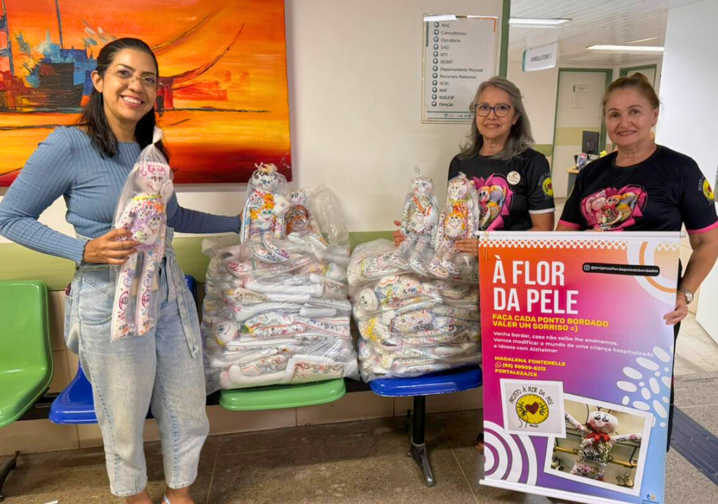 Crianças que receberam alta no Hospital Geral Dr. Waldemar Alcântara (HGWA) foram surpreendidas com um presente especial: bonecas de pano bordadas com histórias de afeto. A iniciativa faz parte do projeto nacional “À Flor da Pele”.