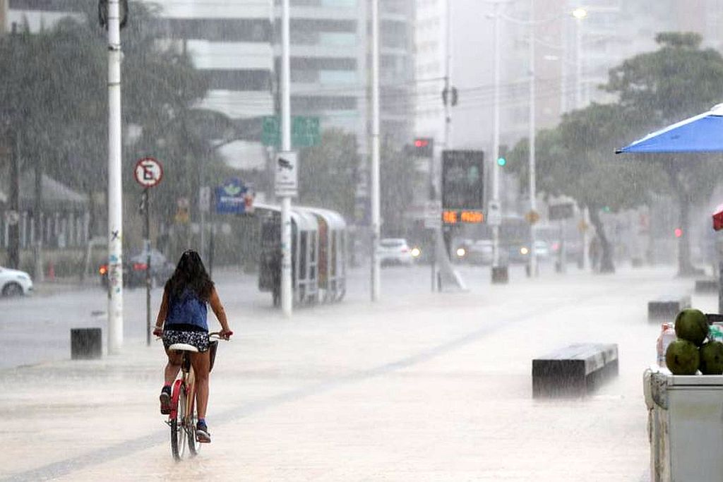 A região litorânea de Fortaleza tem todos os municípios na faixa de risco potencial, com 20% a 40% de chance de chuvas intensas.