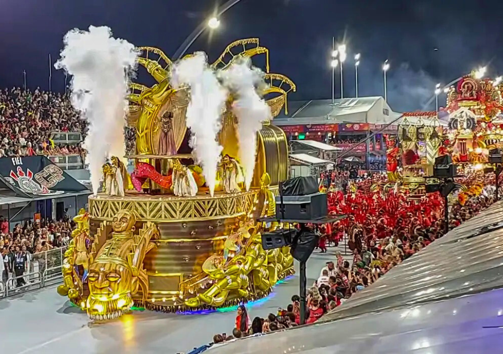 O desfile na passarela do Anhembi destacou a precisão técnica da bateria e a riqueza das alegorias.