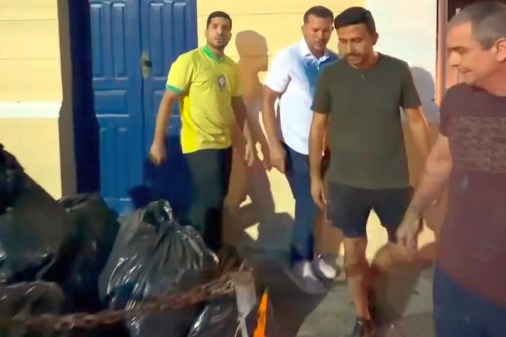 Segundo Fernandes, o material descartado foi recolhido por ele e aliados durante um mutirão de limpeza em uma praça pública, após receber denúncias de moradores sobre atrasos na coleta de lixo.